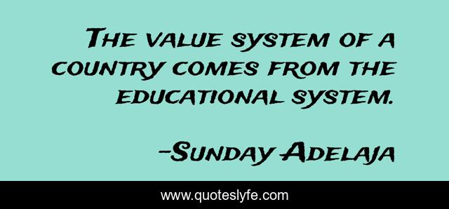 This page presents the quote "The value system of a country comes from the educational system.". Author of this quote is Sunday Adelaja. This quote is about country, educational-system, values, value-system,.