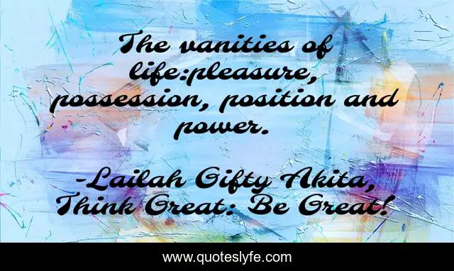 "Lailah Gifty Akita, Think Great: Be Great! Quotes." Quoteslyfe.com, 2025. Tue. 09 Dec. 2025. <https://www.quoteslyfe.com/quote/The-vanities-of-life-pleasure-possession-position-88867>.