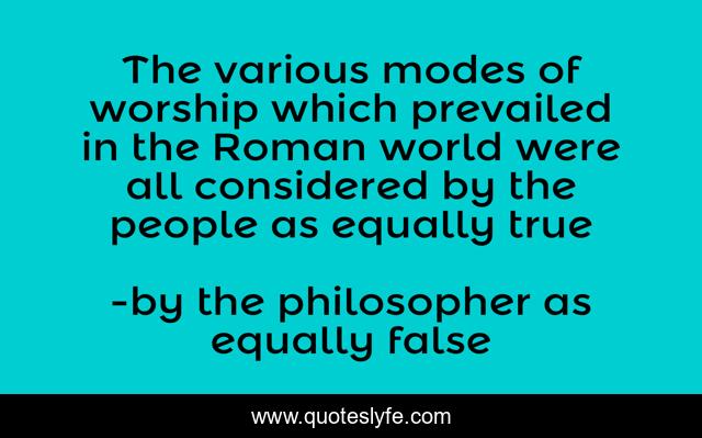 This page presents the quote "The various modes of worship which prevailed in the Roman world were all considered by the people as equally true". Author of this quote is by the philosopher as equally false. .