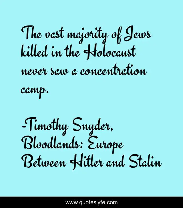 "Timothy Snyder, Bloodlands: Europe Between Hitler and Stalin Quotes." Quoteslyfe.com, 2025. Fri. 05 Dec. 2025. <https://www.quoteslyfe.com/quote/The-vast-majority-of-Jews-killed-in-70542>.