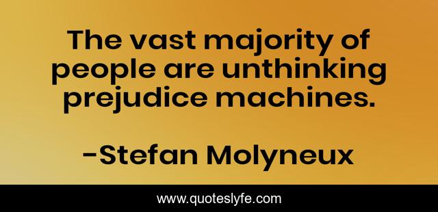 This page presents the quote "The vast majority of people are unthinking prejudice machines.". Author of this quote is Stefan Molyneux. This quote is about patriotism, pshychology, culture, libertarian, false, nationalism, reactive, self-knowledge, statists,.