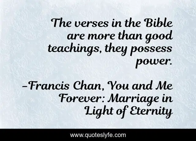 This page presents the quote "The verses in the Bible are more than good teachings, they possess power.". Author of this quote is Francis Chan, You and Me Forever: Marriage in Light of Eternity. This quote is about god, bible, word, power, scripture,.
