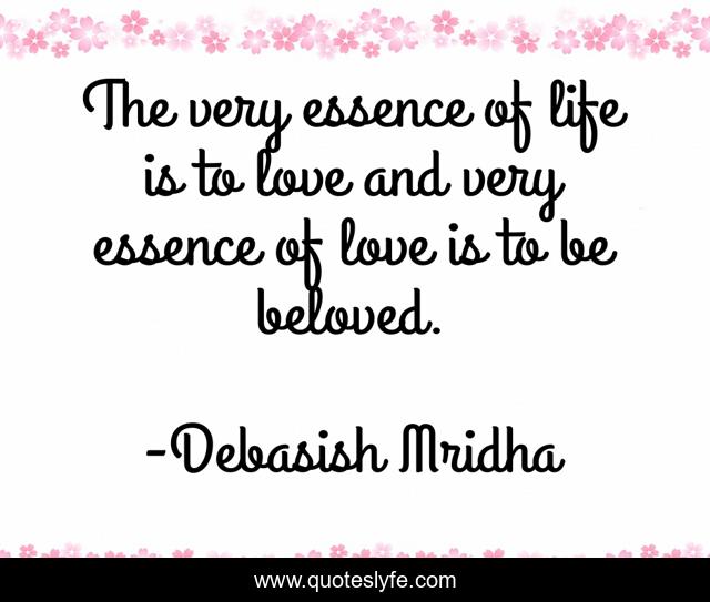 This page presents the quote "The very essence of life is to love and very essence of love is to be beloved.". Author of this quote is Debasish Mridha. This quote is about life, love, knowledge, inspirational, intelligence, philosophy, wisdom, quotes, affection,.