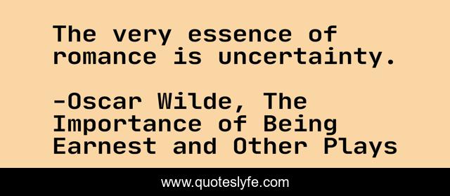 This page presents the quote "The very essence of romance is uncertainty.". Author of this quote is Oscar Wilde, The Importance of Being Earnest and Other Plays. This quote is about romance, love, affection,.