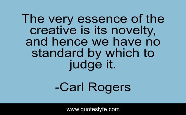 This page presents the quote "The very essence of the creative is its novelty, and hence we have no standard by which to judge it.". Author of this quote is Carl Rogers. This quote is about judge, essence, creative,.