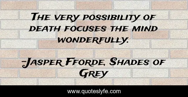 "Jasper Fforde, Shades of Grey Quotes." Quoteslyfe.com, 2025. Sat. 06 Dec. 2025. <https://www.quoteslyfe.com/quote/The-very-possibility-of-death-focuses-the-94080>.