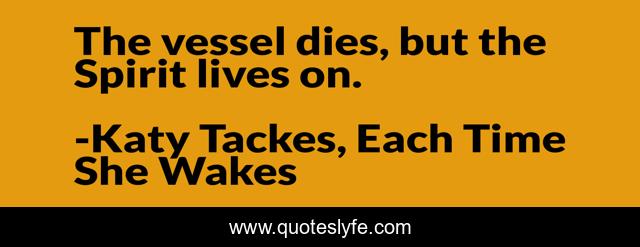 "Katy Tackes, Each Time She Wakes Quotes." Quoteslyfe.com, 2025. Sat. 06 Dec. 2025. <https://www.quoteslyfe.com/quote/The-vessel-dies-but-the-Spirit-lives-121461>.
