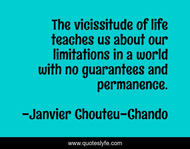This page presents the quote "The vicissitude of life teaches us about our limitations in a world with no guarantees and permanence.". Author of this quote is Janvier Chouteu-Chando. This quote is about life, positive, motivational, confidence, wisdom, spirituality, optimistic, inspirational, enthusiasm,.