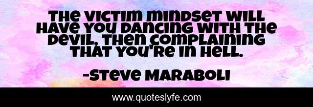 This page presents the quote "The victim mindset will have you dancing with the devil, then complaining that you're in hell.". Author of this quote is Steve Maraboli. This quote is about devil, mentality, victim-mentality, habits, victim, hell,.
