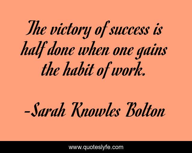 This page presents the quote "The victory of success is half done when one gains the habit of work.". Author of this quote is Sarah Knowles Bolton. .