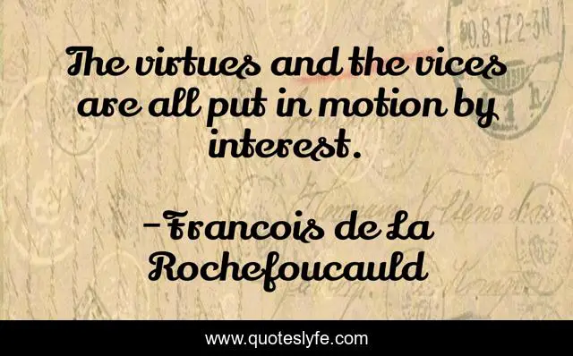This page presents the quote "The virtues and the vices are all put in motion by interest.". Author of this quote is Francois de La Rochefoucauld. .