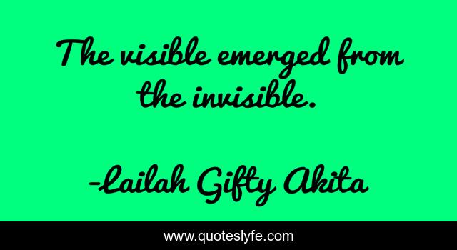 This page presents the quote "The visible emerged from the invisible.". Author of this quote is Lailah Gifty Akita. This quote is about eye, observation, visible, invisible, life-philosophy, inspiration,.