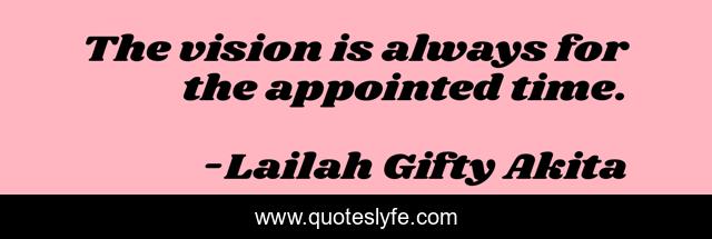 This page presents the quote "The vision is always for the appointed time.". Author of this quote is Lailah Gifty Akita. This quote is about confidence, positive, motivational, dont-give-up, vision, timing, dreams, optimistic,.