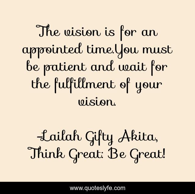 "Lailah Gifty Akita, Think Great: Be Great! Quotes." Quoteslyfe.com, 2025. Sun. 07 Dec. 2025. <https://www.quoteslyfe.com/quote/The-vision-is-for-an-appointed-time-197459>.