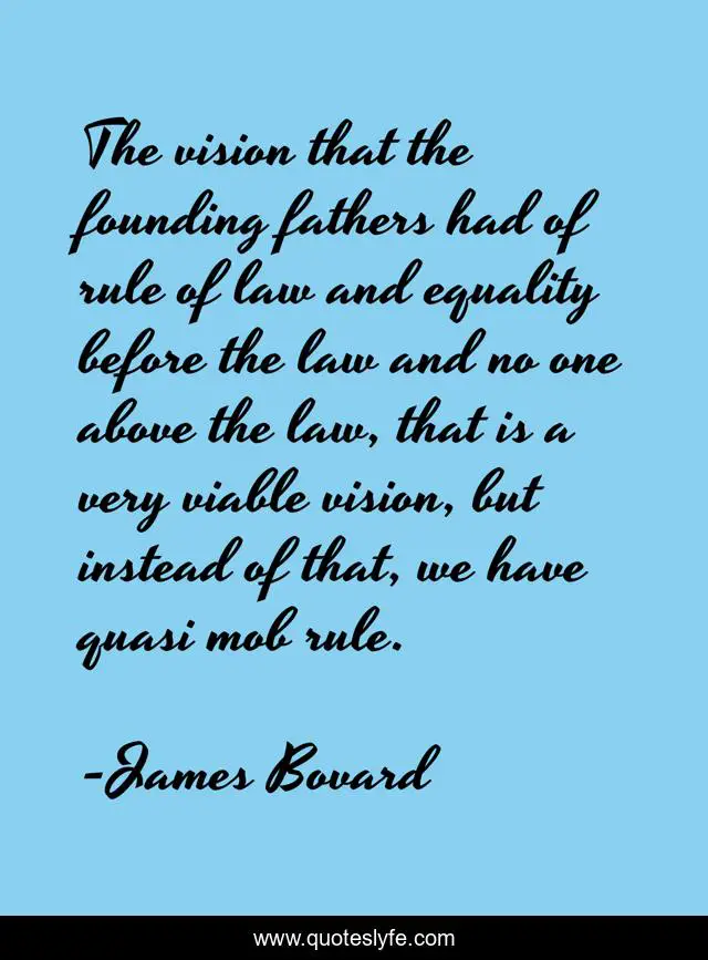 This page presents the quote "The vision that the founding fathers had of rule of law and equality before the law and no one above the law, that is a very viable vision, but instead of that, we have quasi mob rule.". Author of this quote is James Bovard. This quote is about law, vision, rule of law,.