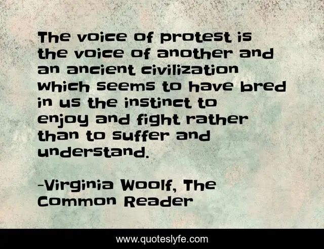 "Virginia Woolf, The Common Reader Quotes." Quoteslyfe.com, 2025. Fri. 05 Dec. 2025. <https://www.quoteslyfe.com/quote/The-voice-of-protest-is-the-voice-115970>.
