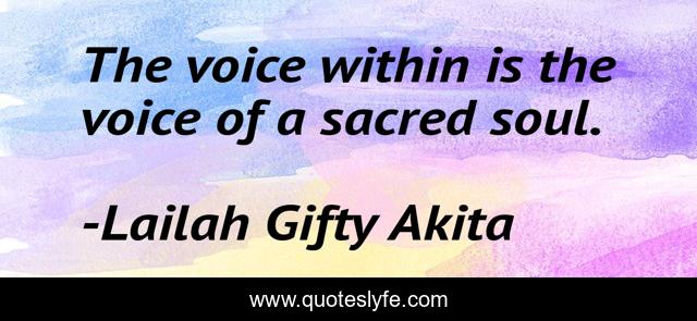 This page presents the quote "The voice within is the voice of a sacred soul.". Author of this quote is Lailah Gifty Akita. This quote is about instinct, spirituality, soul, sacred,.