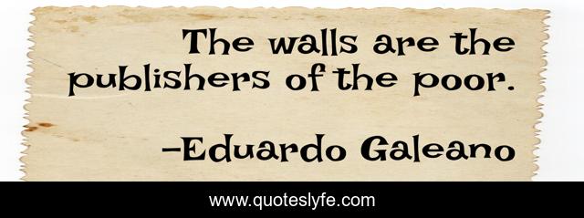This page presents the quote "The walls are the publishers of the poor.". Author of this quote is Eduardo Galeano. This quote is about enthusiasm, inspirational,.