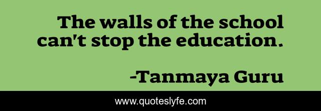 This page presents the quote "The walls of the school can't stop the education.". Author of this quote is Tanmaya Guru. .