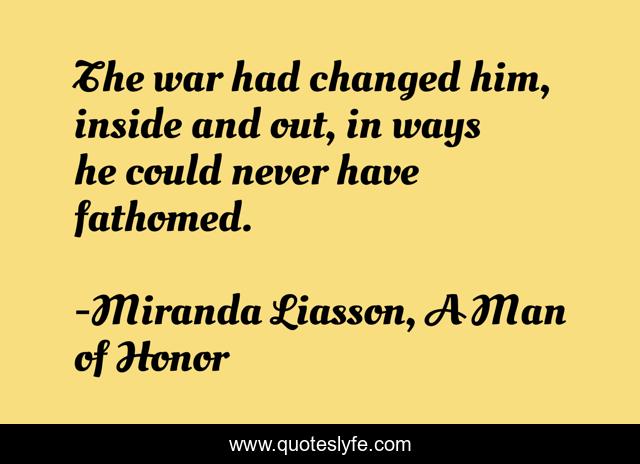 "Miranda Liasson, A Man of Honor Quotes." Quoteslyfe.com, 2025. Sat. 06 Dec. 2025. <https://www.quoteslyfe.com/quote/The-war-had-changed-him-inside-and-245049>.