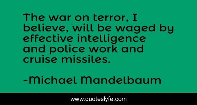 This page presents the quote "The war on terror, I believe, will be waged by effective intelligence and police work and cruise missiles.". Author of this quote is Michael Mandelbaum. This quote is about work, believe, war,.