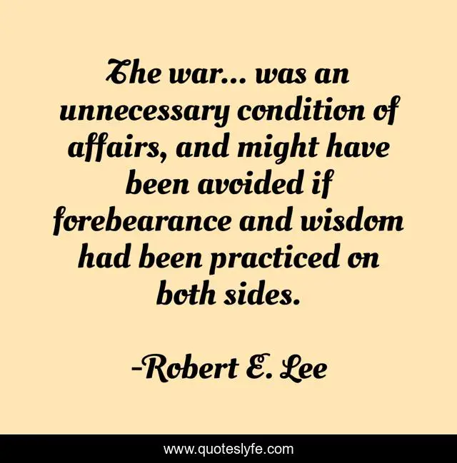 This page presents the quote "The war... was an unnecessary condition of affairs, and might have been avoided if forebearance and wisdom had been practiced on both sides.". Author of this quote is Robert E. Lee. This quote is about wisdom, sides, both sides,.