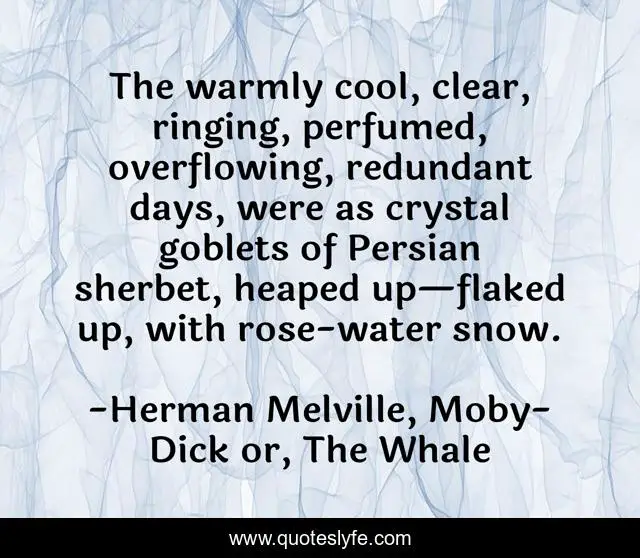 "Herman Melville, Moby-Dick or, The Whale Quotes." Quoteslyfe.com, 2025. Fri. 05 Dec. 2025. <https://www.quoteslyfe.com/quote/The-warmly-cool-clear-ringing-perfumed-overflowing-242070>.