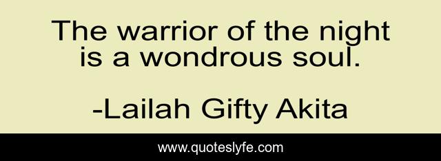 This page presents the quote "The warrior of the night is a wondrous soul.". Author of this quote is Lailah Gifty Akita. This quote is about warrior, confidence, positive, motivational, soul, wisdom-of-lailah-gifty-akita, optimistic,.