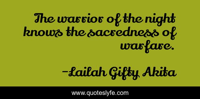 This page presents the quote "The warrior of the night knows the sacredness of warfare.". Author of this quote is Lailah Gifty Akita. This quote is about warrior, christian-life, spiritual, warfare,.