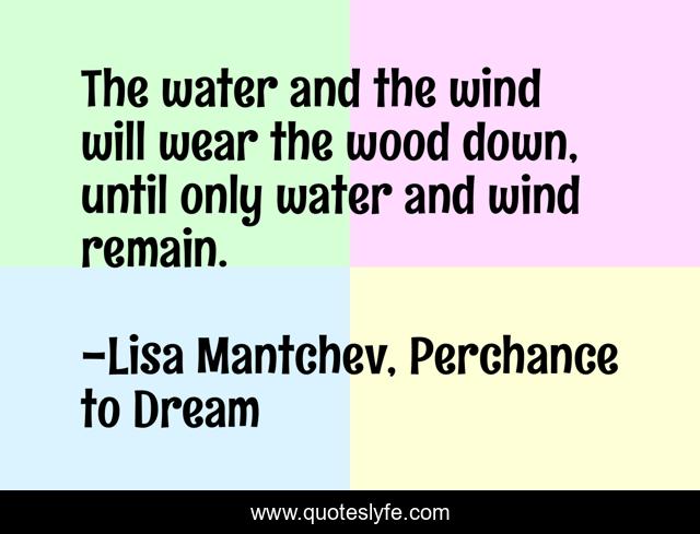 "Lisa Mantchev, Perchance to Dream Quotes." Quoteslyfe.com, 2025. Mon. 08 Dec. 2025. <https://www.quoteslyfe.com/quote/The-water-and-the-wind-will-wear-227402>.