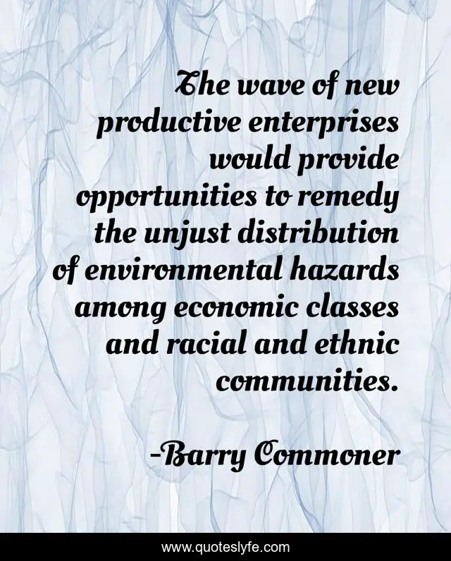 This page presents the quote "The wave of new productive enterprises would provide opportunities to remedy the unjust distribution of environmental hazards among economic classes and racial and ethnic communities.". Author of this quote is Barry Commoner. This quote is about new, economic, opportunities,.