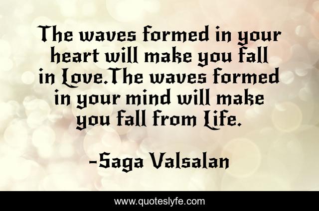 This page presents the quote "The waves formed in your heart will make you fall in Love.The waves formed in your mind will make you fall from Life.". Author of this quote is Saga Valsalan. This quote is about thought, life,.