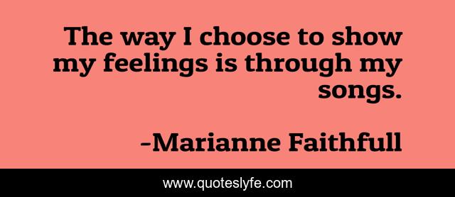 This page presents the quote "The way I choose to show my feelings is through my songs.". Author of this quote is Marianne Faithfull. This quote is about feelings, music, songs,.