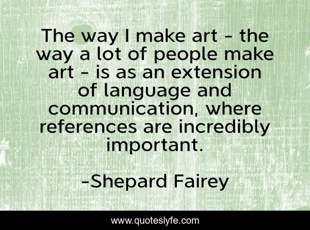 This page presents the quote "The way I make art - the way a lot of people make art - is as an extension of language and communication, where references are incredibly important.". Author of this quote is Shepard Fairey. This quote is about art, language, people,.