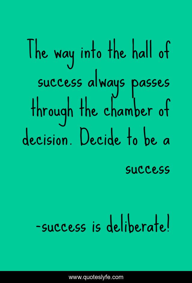 This page presents the quote "The way into the hall of success always passes through the chamber of decision. Decide to be a success". Author of this quote is success is deliberate!. This quote is about israelmore ayivor, the great hand book of quotes,.