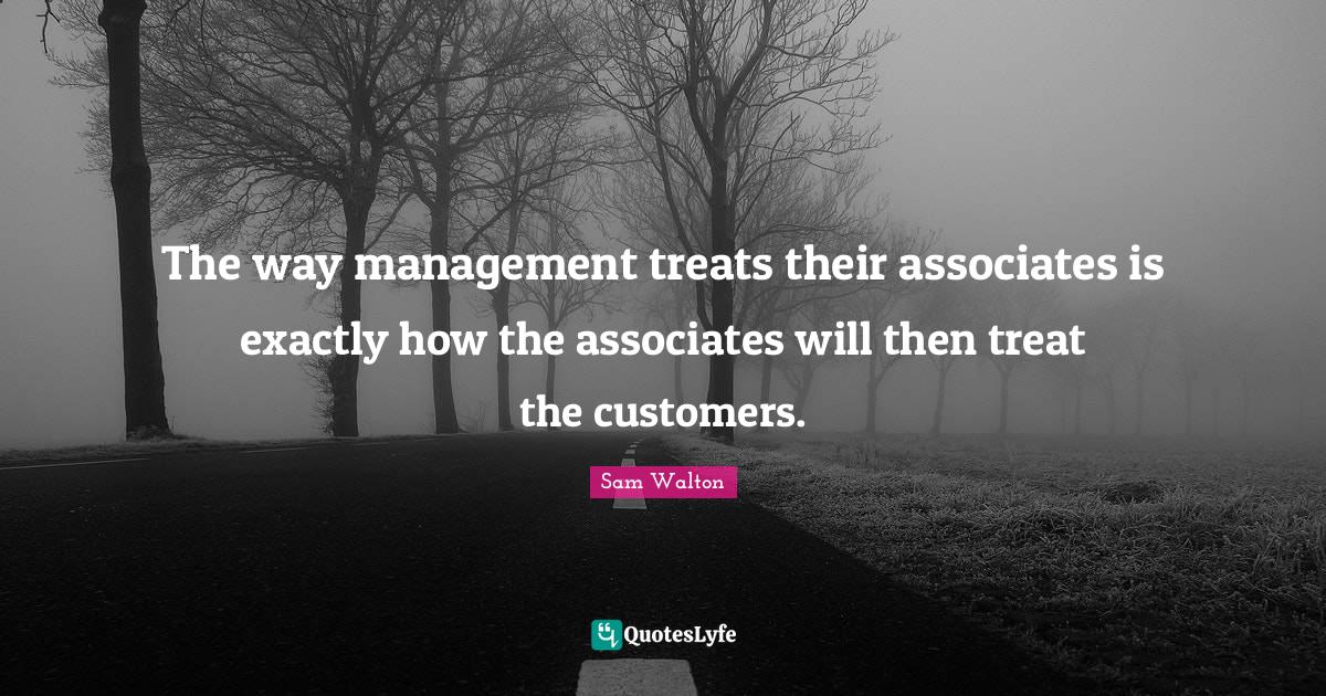 This page presents the quote "The way management treats their associates is exactly how the associates will then treat the customers.". Author of this quote is Sam Walton. This quote is about way, management, associates, customers, treats,.