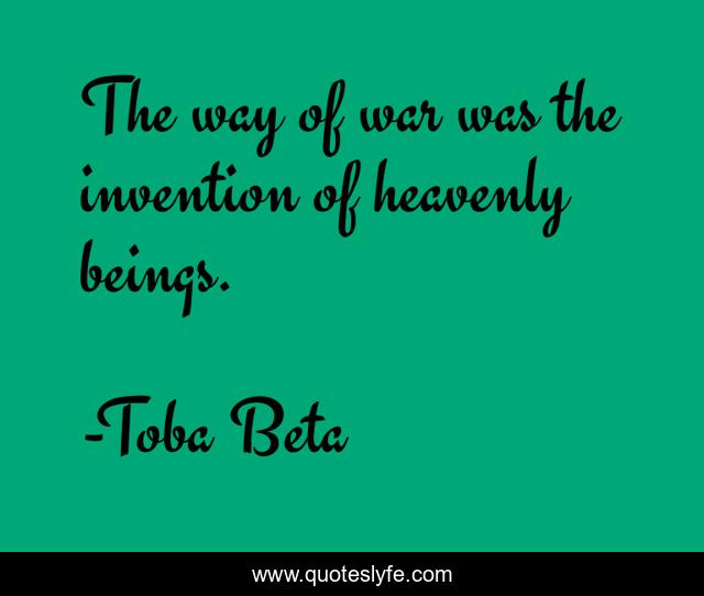 This page presents the quote "The way of war was the invention of heavenly beings.". Author of this quote is Toba Beta. This quote is about secret, heaven, invention, war, way,.