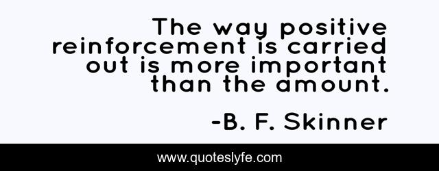 This page presents the quote "The way positive reinforcement is carried out is more important than the amount.". Author of this quote is B. F. Skinner. This quote is about important, way,.