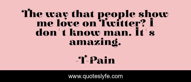 This page presents the quote "The way that people show me love on Twitter? I don't know man. It's amazing.". Author of this quote is T-Pain. This quote is about me, love, affection, man,.