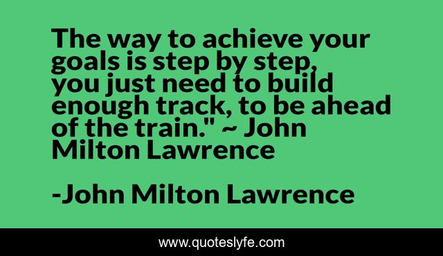 This page presents the quote "The way to achieve your goals is step by step, you just need to build enough track, to be ahead of the train." ~ John Milton Lawrence". Author of this quote is John Milton Lawrence. This quote is about goals, success, self-improvement,.