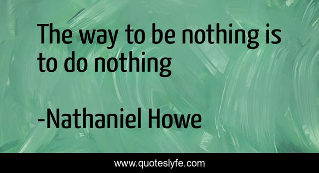This page presents the quote "The way to be nothing is to do nothing". Author of this quote is Nathaniel Howe. This quote is about inspirational, self-improvement, success, enthusiasm,.