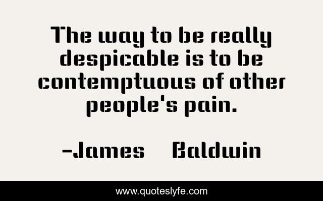 This page presents the quote "The way to be really despicable is to be contemptuous of other people's pain.". Author of this quote is James Baldwin. This quote is about empathy, pain, contempt, others,.