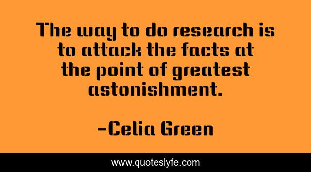 This page presents the quote "The way to do research is to attack the facts at the point of greatest astonishment.". Author of this quote is Celia Green. This quote is about facts, astonishment, research,.