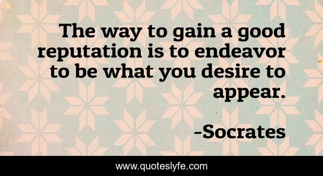 This page presents the quote "The way to gain a good reputation is to endeavor to be what you desire to appear.". Author of this quote is Socrates. This quote is about reputation, integrity, inspiration,.