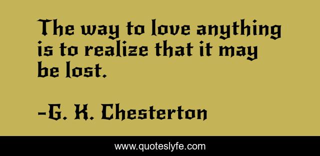 This page presents the quote "The way to love anything is to realize that it may be lost.". Author of this quote is G. K. Chesterton. .