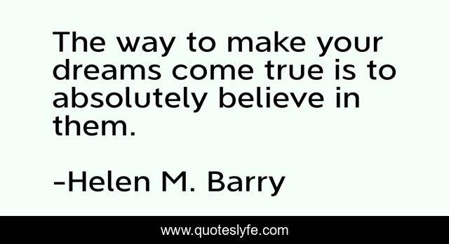 This page presents the quote "The way to make your dreams come true is to absolutely believe in them.". Author of this quote is Helen M. Barry. This quote is about empowerment, love, positivity, dreams, dreaming, affection,.