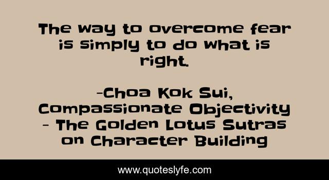 "Choa Kok Sui, Compassionate Objectivity - The Golden Lotus Sutras on Character Building Quotes." Quoteslyfe.com, 2025. Sat. 06 Dec. 2025. <https://www.quoteslyfe.com/quote/The-way-to-overcome-fear-is-simply-239476>.