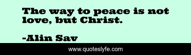 This page presents the quote "The way to peace is not love, but Christ.". Author of this quote is Alin Sav. This quote is about enthusiasm, life, christian, spiritual, inspirational,.