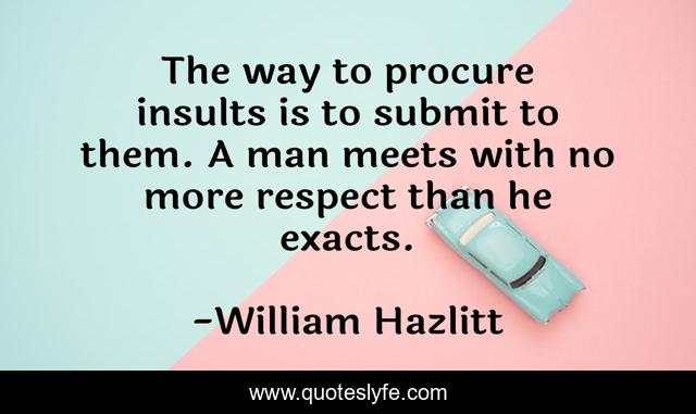 This page presents the quote "The way to procure insults is to submit to them. A man meets with no more respect than he exacts.". Author of this quote is William Hazlitt. .