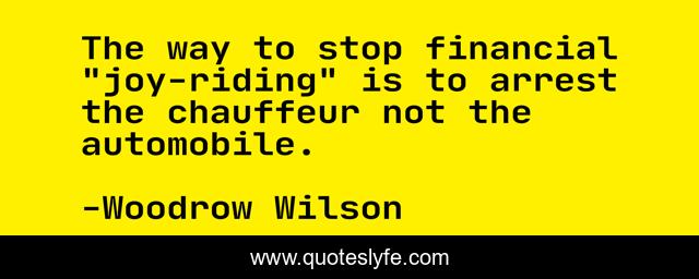 This page presents the quote "The way to stop financial "joy-riding" is to arrest the chauffeur not the automobile.". Author of this quote is Woodrow Wilson. .